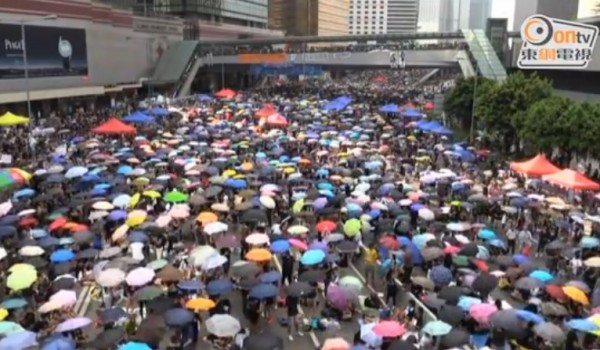 〔本報訊〕香港佔中行動第4天,在金鐘地段集會的示威民眾,下午3時整發起撐遮行動,上千名示威者同時打開雨傘3分鐘,象徵以團結力量和平爭取普選,在現場形成壯觀傘海。(閱讀全文...)